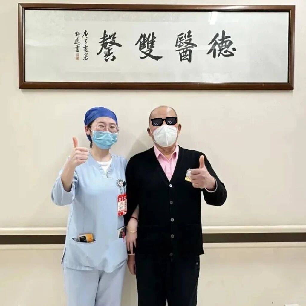 Сегодня господин Сюй достиг важной отметки — пяти лет ремиссии после трансплантации. На церемонии в больнице ему вручили памятный знак, символизирующий этот этап.