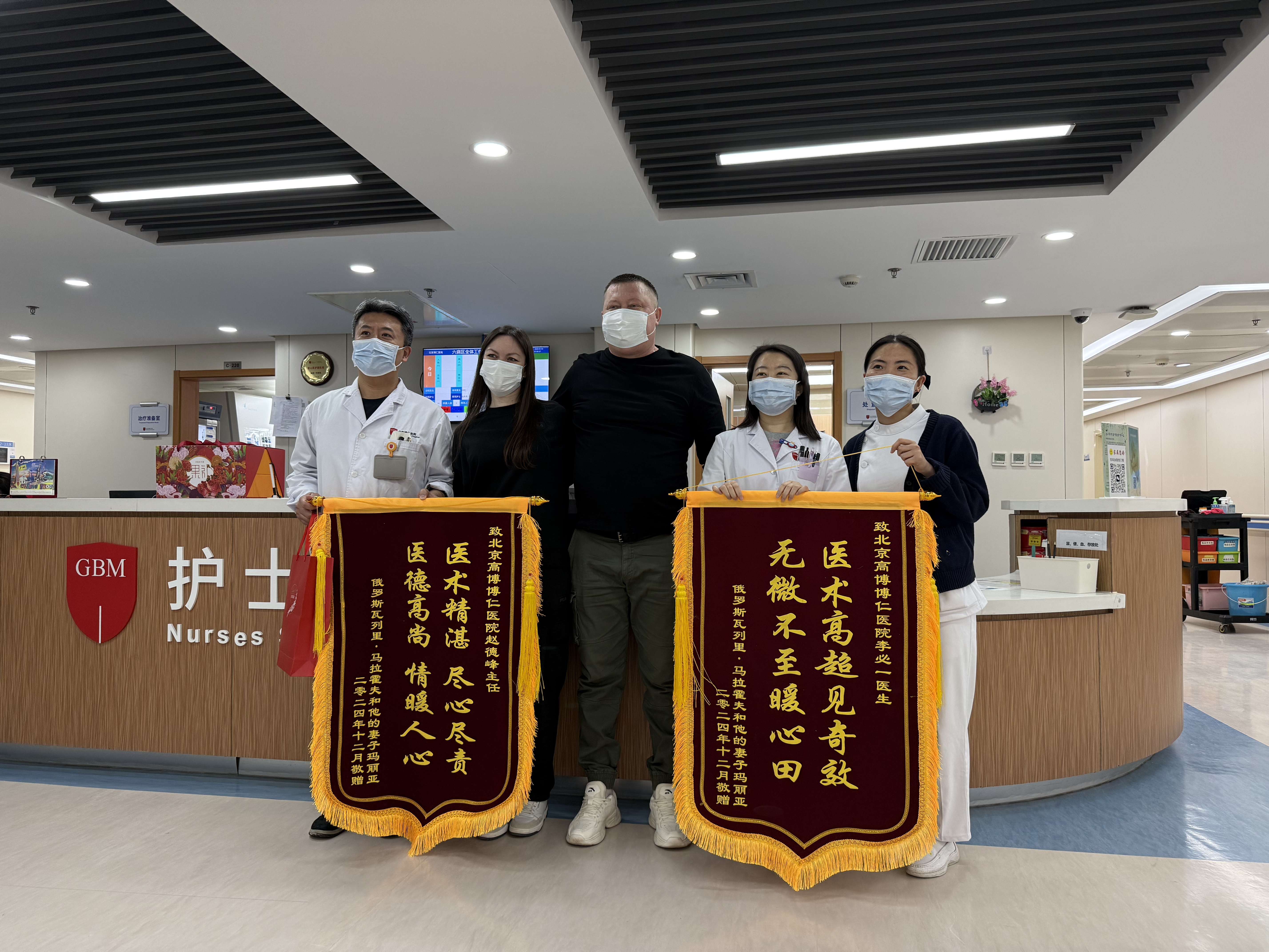 为了表示感谢,VARELII和妻子在出院前专门定制了锦旗,亲手送给了赵德峰主任团队,“整个治疗过程都让我非常感动,感谢博仁医院,感谢赵主任团队,让我能够重新开始工作和生活,希望下一次能带着家人来中国旅游,而不再是治病!”VARELII对未来的生活充满了期待。
